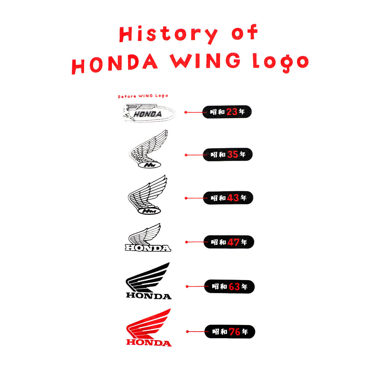 昭和100年祭×HONDA > 【期間限定】昭和100年祭 × HONDA コラボTシャツ ウイングマークヒストリー